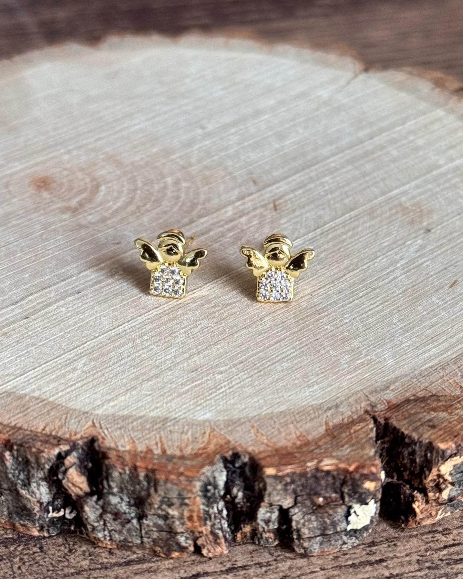 Estos zarcillos dorados en forma de angelito tienen detalles brillantes que aportan un toque delicado y especial, perfectos para quienes aman accesorios con significado.