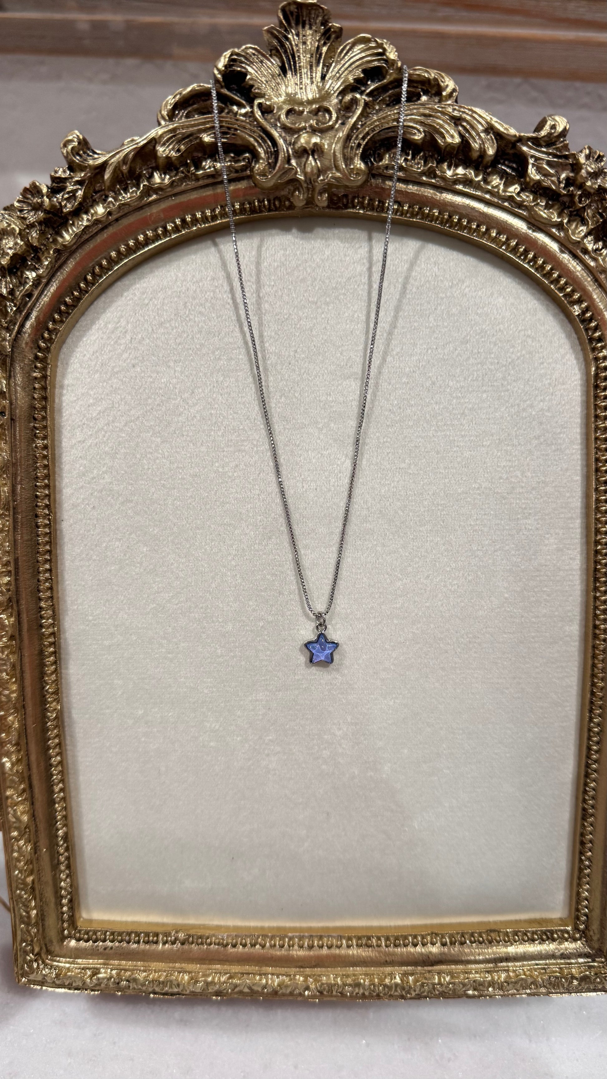 Su cadena plateada sostiene una estrella azul que aporta un toque de brillo y color delicado, perfecto para quienes aman accesorios sutiles pero con personalidad.