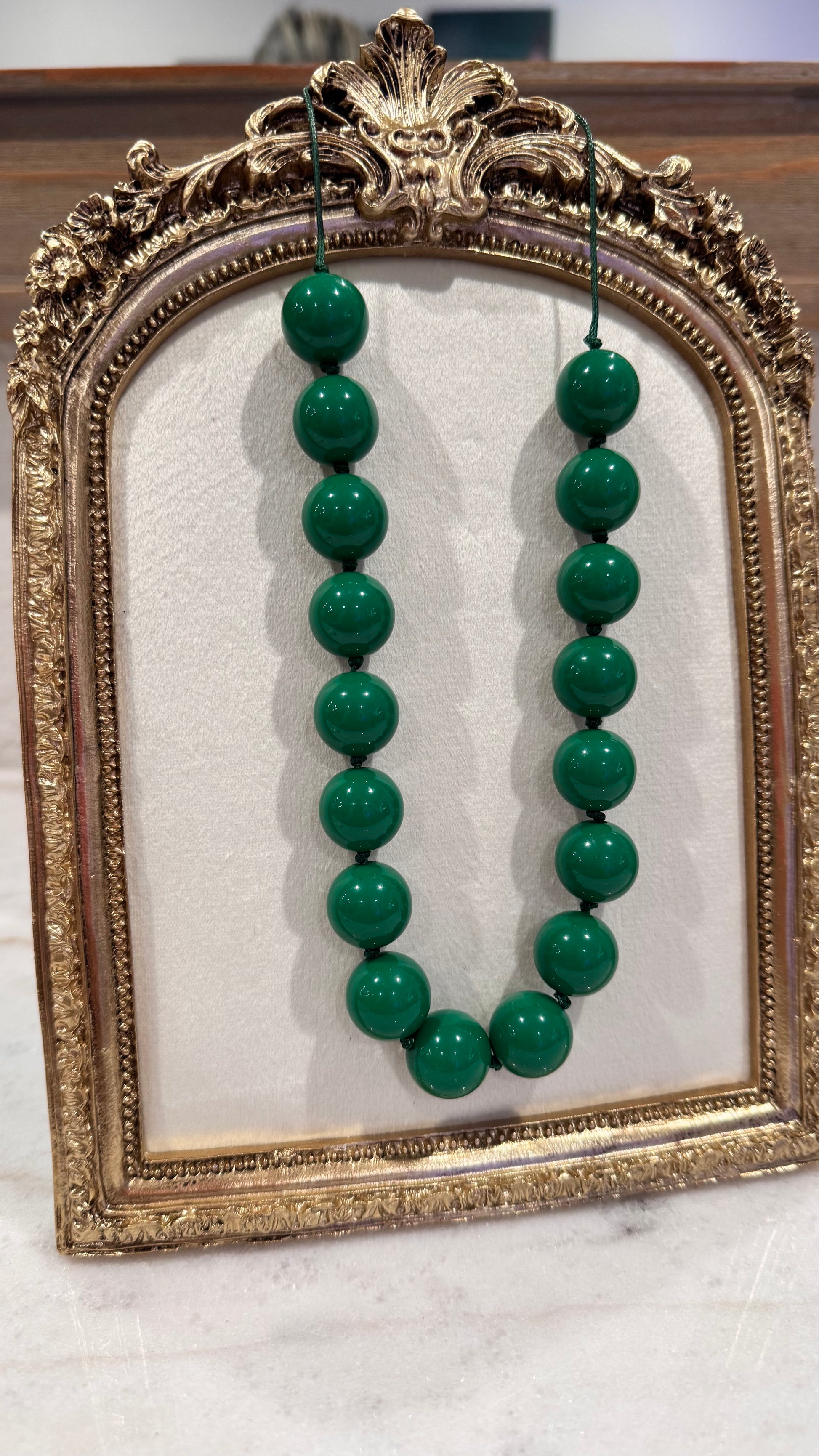 Sus cuentas grandes en tono verde profundo crean un look elegante y poderoso, perfecto para quienes aman accesorios diferentes que realzan cualquier outfit.