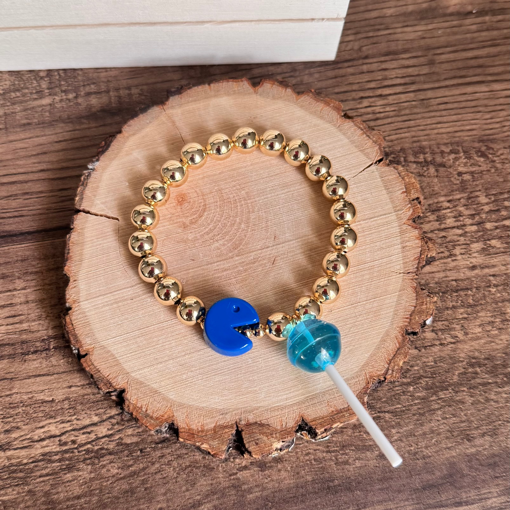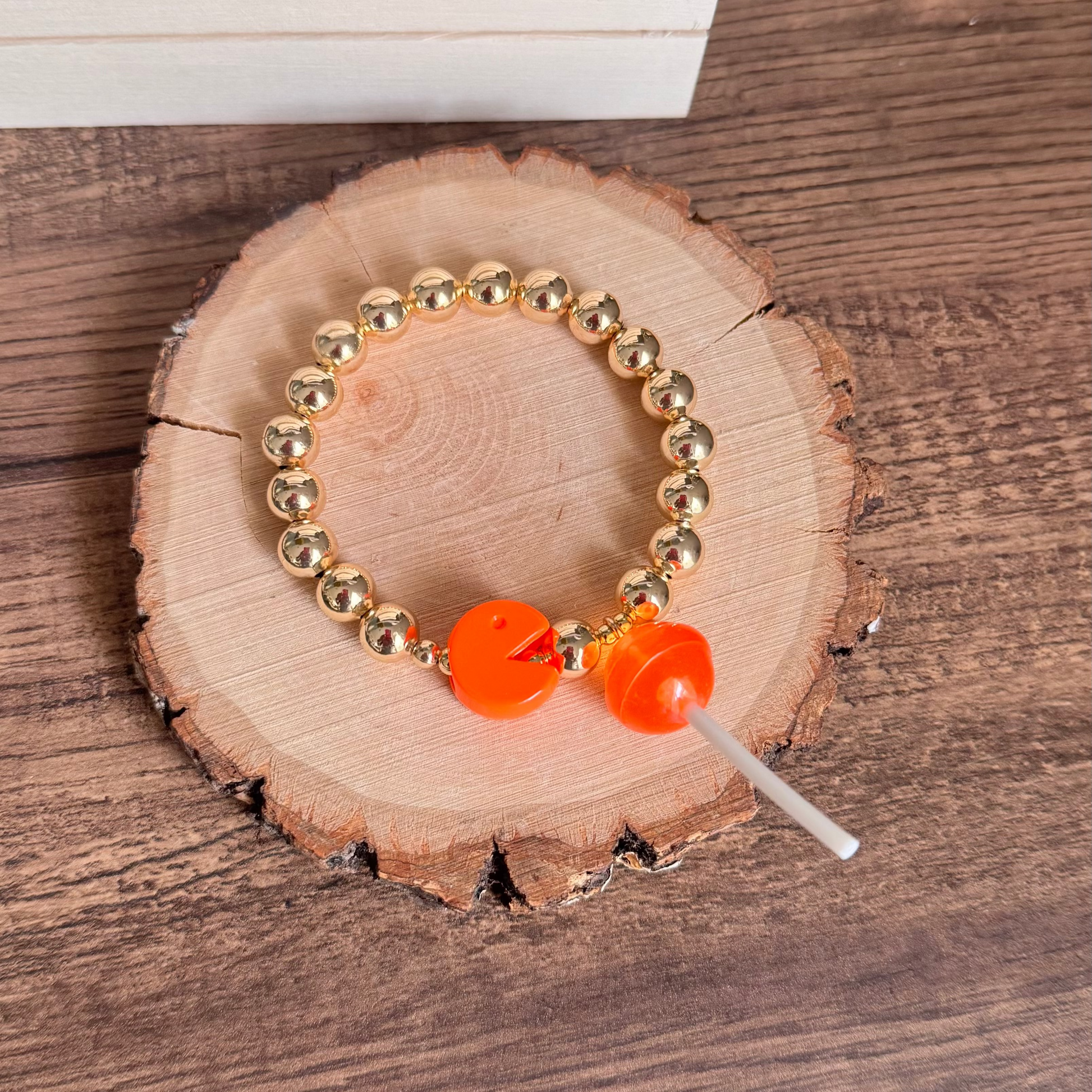 Una pieza que grita estilo y nostalgia. Esta pulsera de balines dorados se llena de color y personalidad con dijes inspirados en el clásico PAC MAN. Ideal para quienes aman lo diferente y divertido.