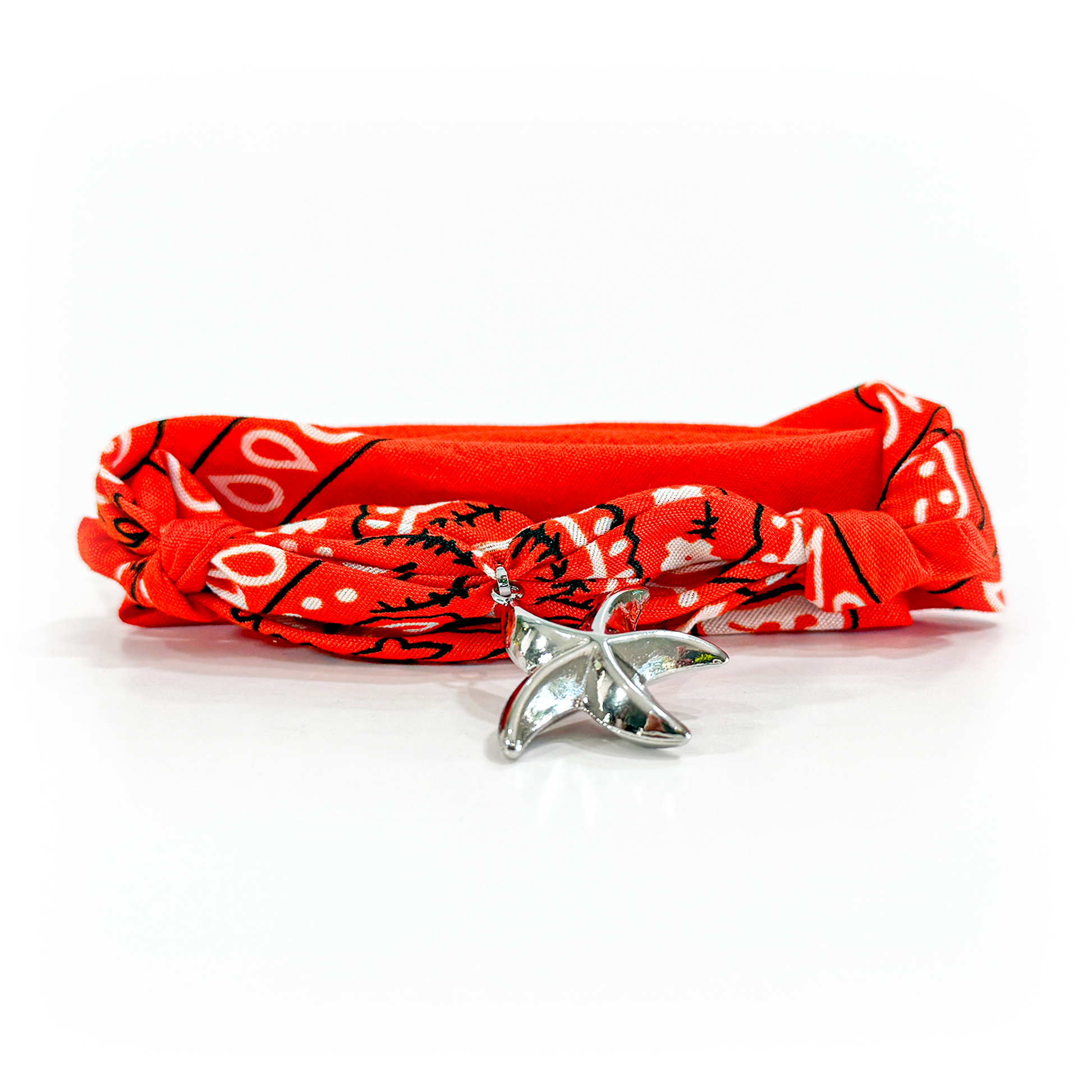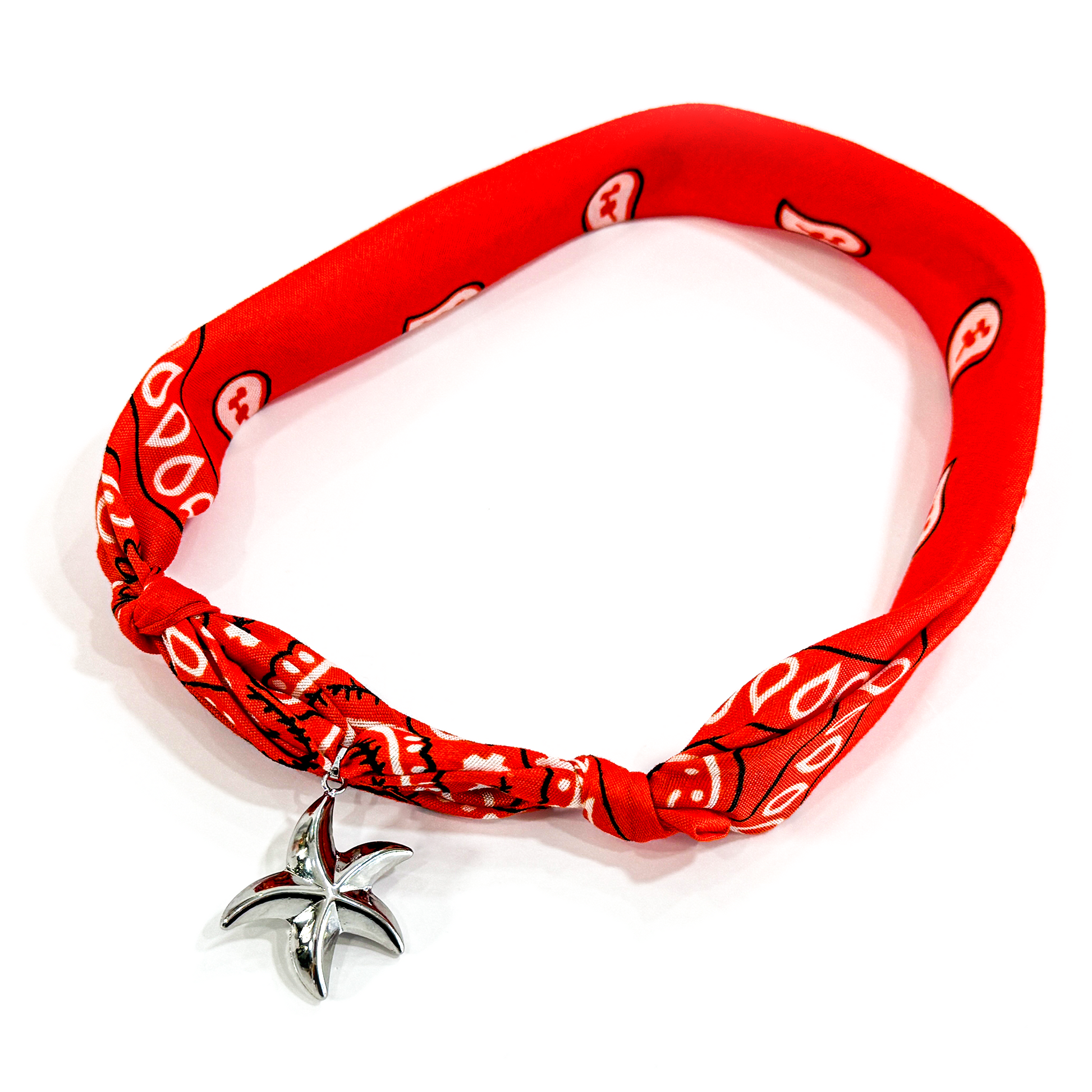 Salma es una pieza con alma libre 🌺. Este collar tipo bandana en vibrante rojo se mezcla con el brillo de una estrella marina plateada ✨, creando un accesorio lleno de fuerza y estilo. Inspirado en el mar, el sol y las olas 🌊, es ideal para quienes quieren destacar con personalidad.