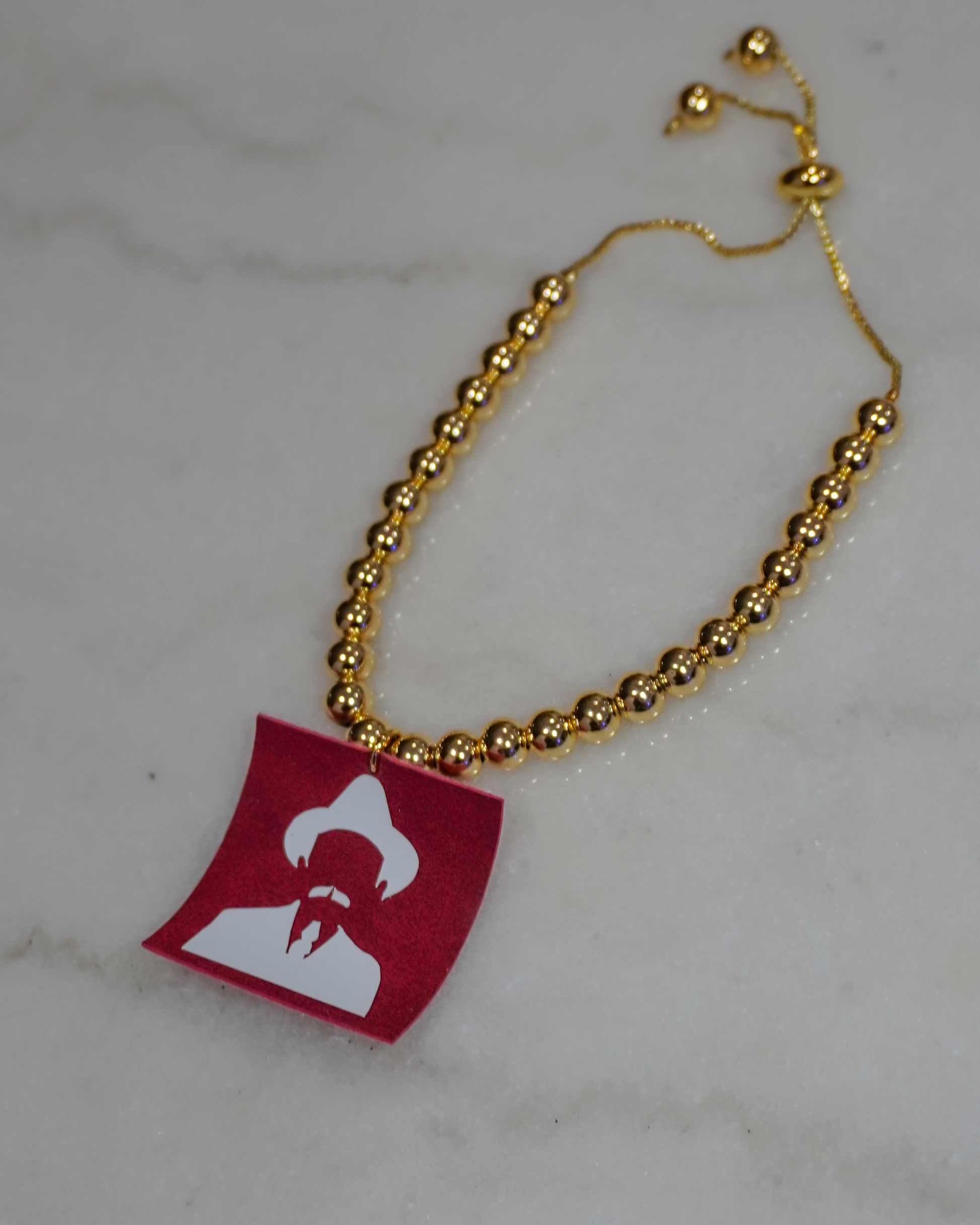 Diseñada con cuentas doradas de brillo delicado y un dije inspirado en la silueta de José Gregorio Hernández, esta pieza se convierte en un amuleto significativo para llevar cerca del corazón.