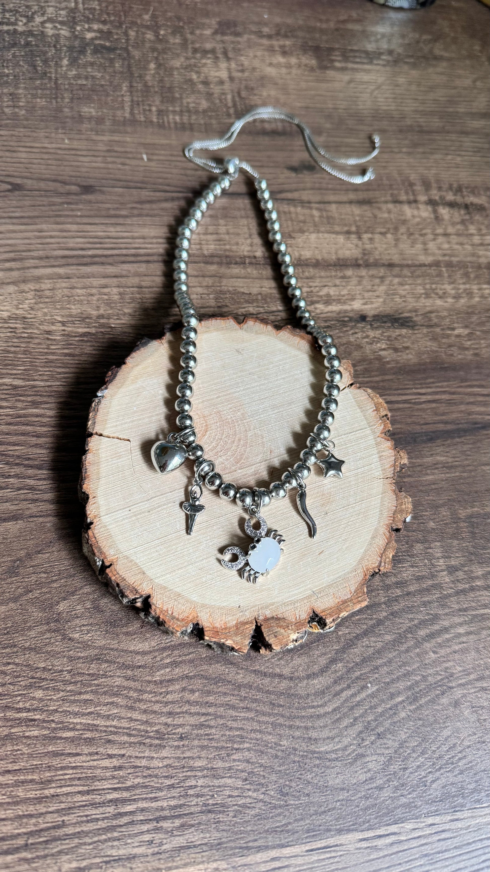El collar Mar captura el espíritu del mar con un diseño moderno y encantador. 🌊✨ Su cadena plateada sostiene dijes marinos como estrella de mar, cangrejo, corazones metálicos y una gema tornasol que cambia de azul a morado según la luz. 💙💜 Una pieza única que transforma cualquier look en algo especial. Ideal para quienes buscan accesorios originales y llenos de personalidad. 🦀⭐
